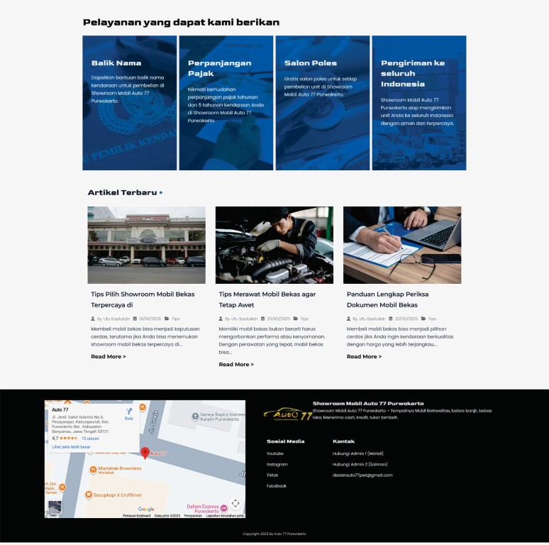 Website ini membantu Auto 77 Purwokerto tampil lebih profesional di dunia digital.