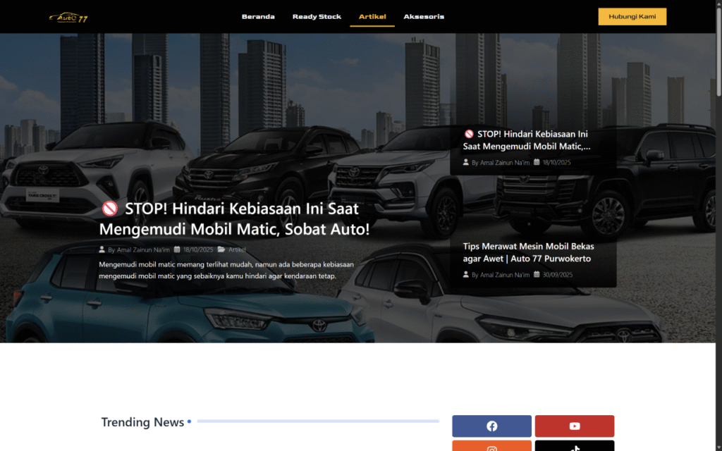 Website Auto 77 kini hadir dengan tampilan profesional, cepat diakses, dan mudah dikelola.